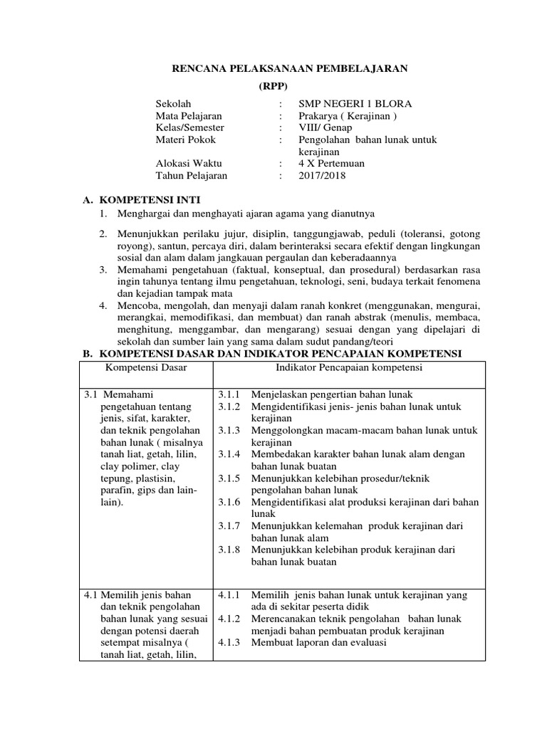Rpp 1 lembar prakarya kelas 8 semester 1 kerajinan bahan lunak. We did not find results for: Maybe you would like to learn more about one of these? Check spelling or type a new query.